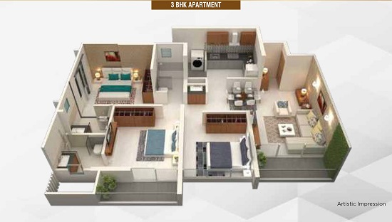 Carpet Area: 793 – 825 sq.ft. (73.67 – 76.65 sq.m.) - 3 BHK Apartment