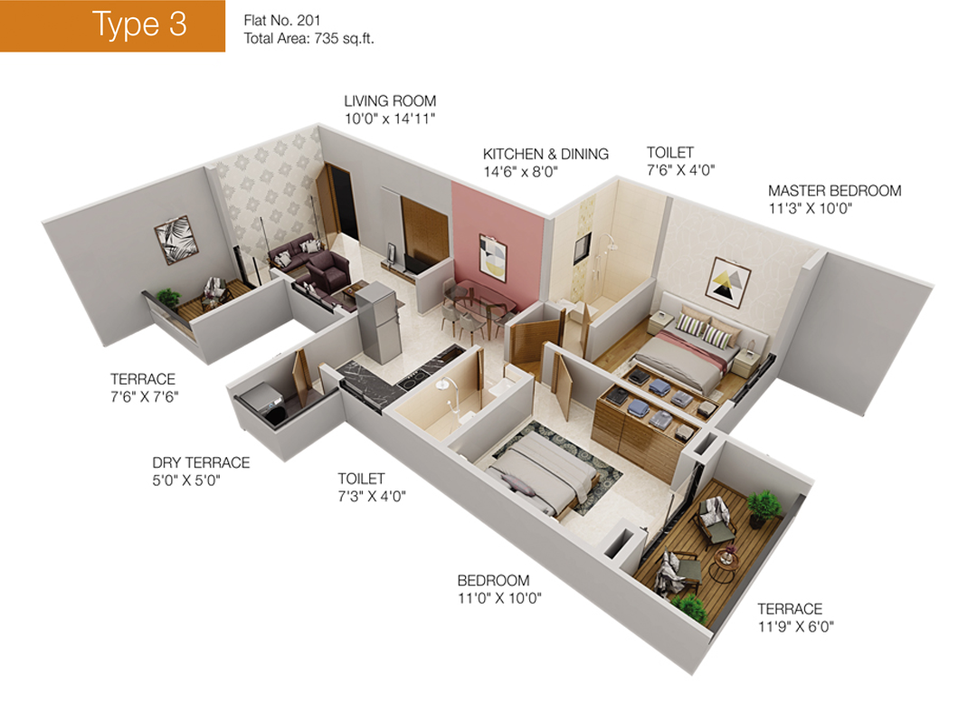 - Project Area :- 687.00 sq.ft. – 755.00 sq.ft.