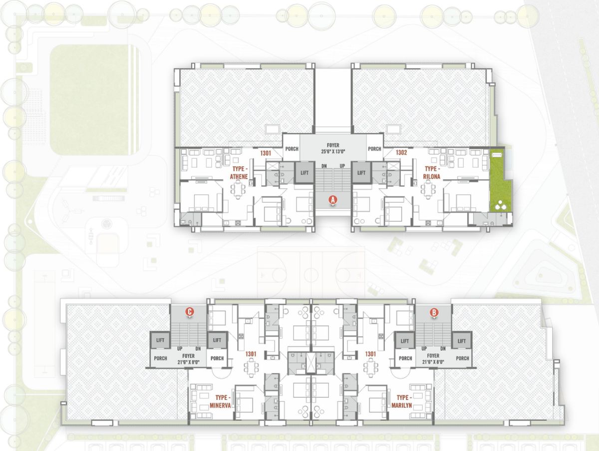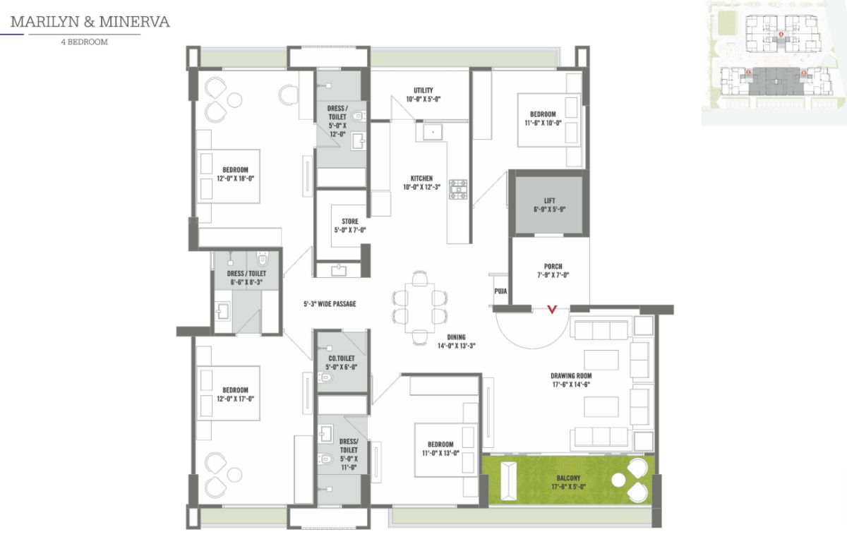 - 4 BHK Apartment : 1510.00 Sq.ft. – 1636.00 Sq.ft.