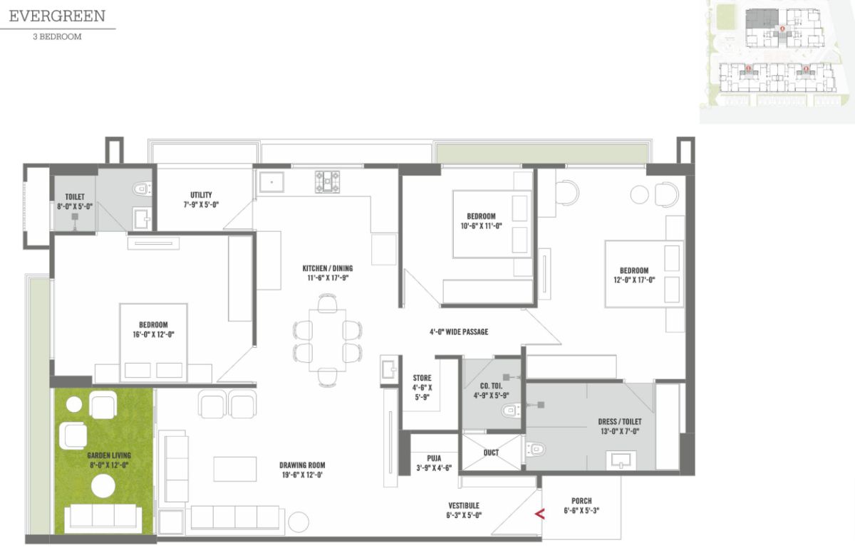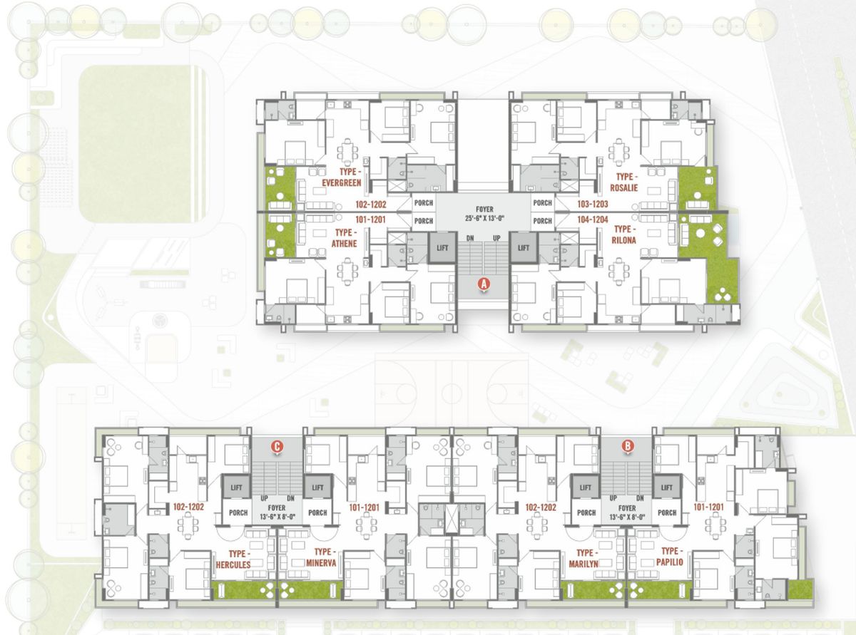 - 3 BHK Apartment : 1248.00 Sq.ft. – 1358.00 Sq.ft.