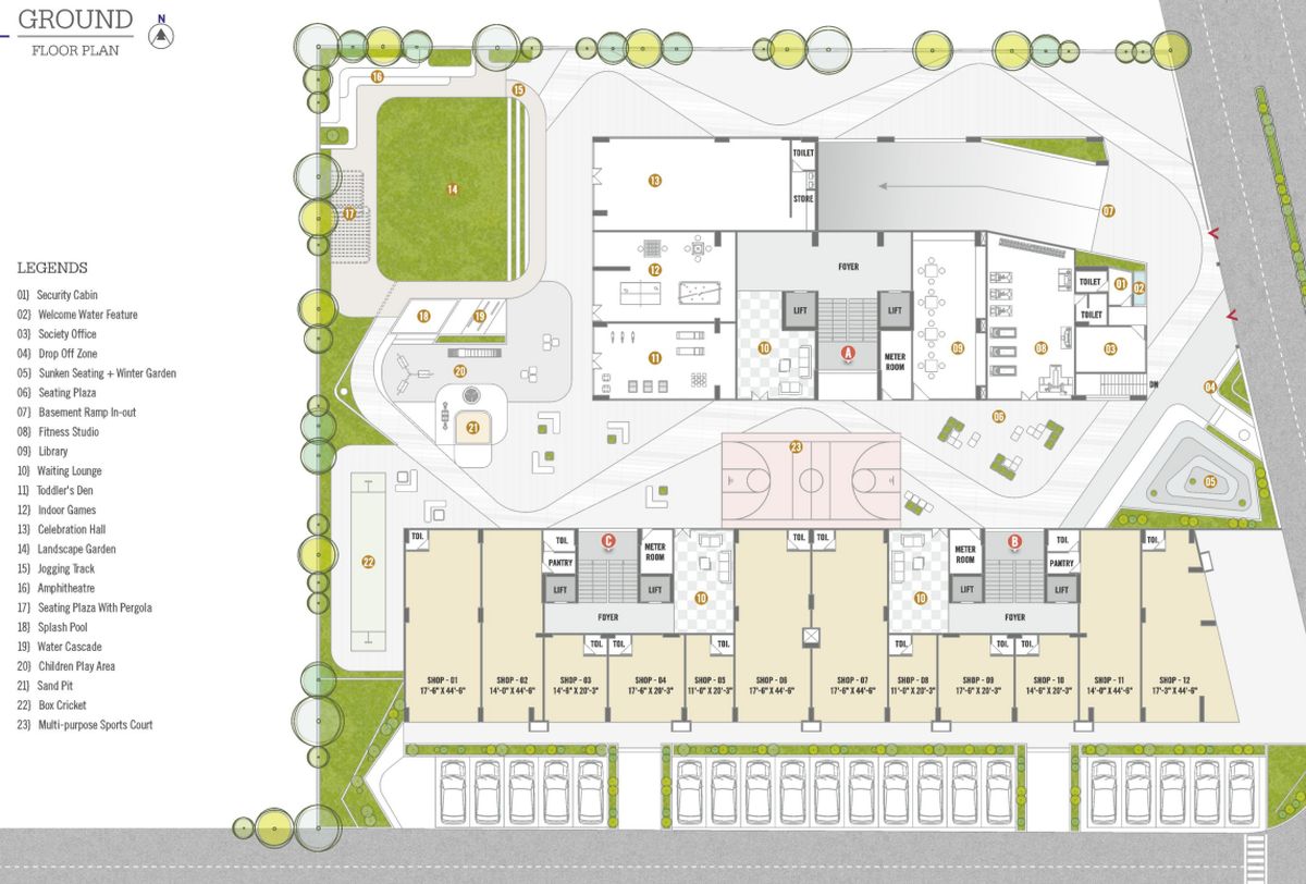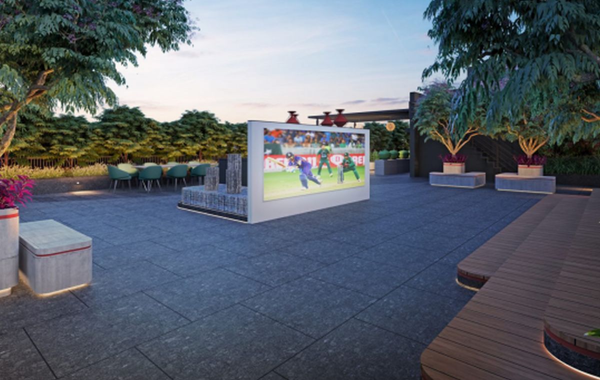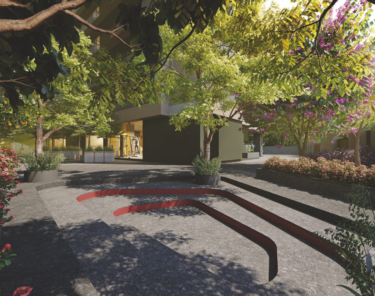 SALIENT FEATURES : High Speed Elevators • Three Level Basement • No Vehicle Zone @ Ground Floor • Private Porch for each Apartment • Garden Living Balcony with Decorative Ceiling • Gated Community • Separate Borewell for Commercial and Residence Use • Solar System for Common Area
