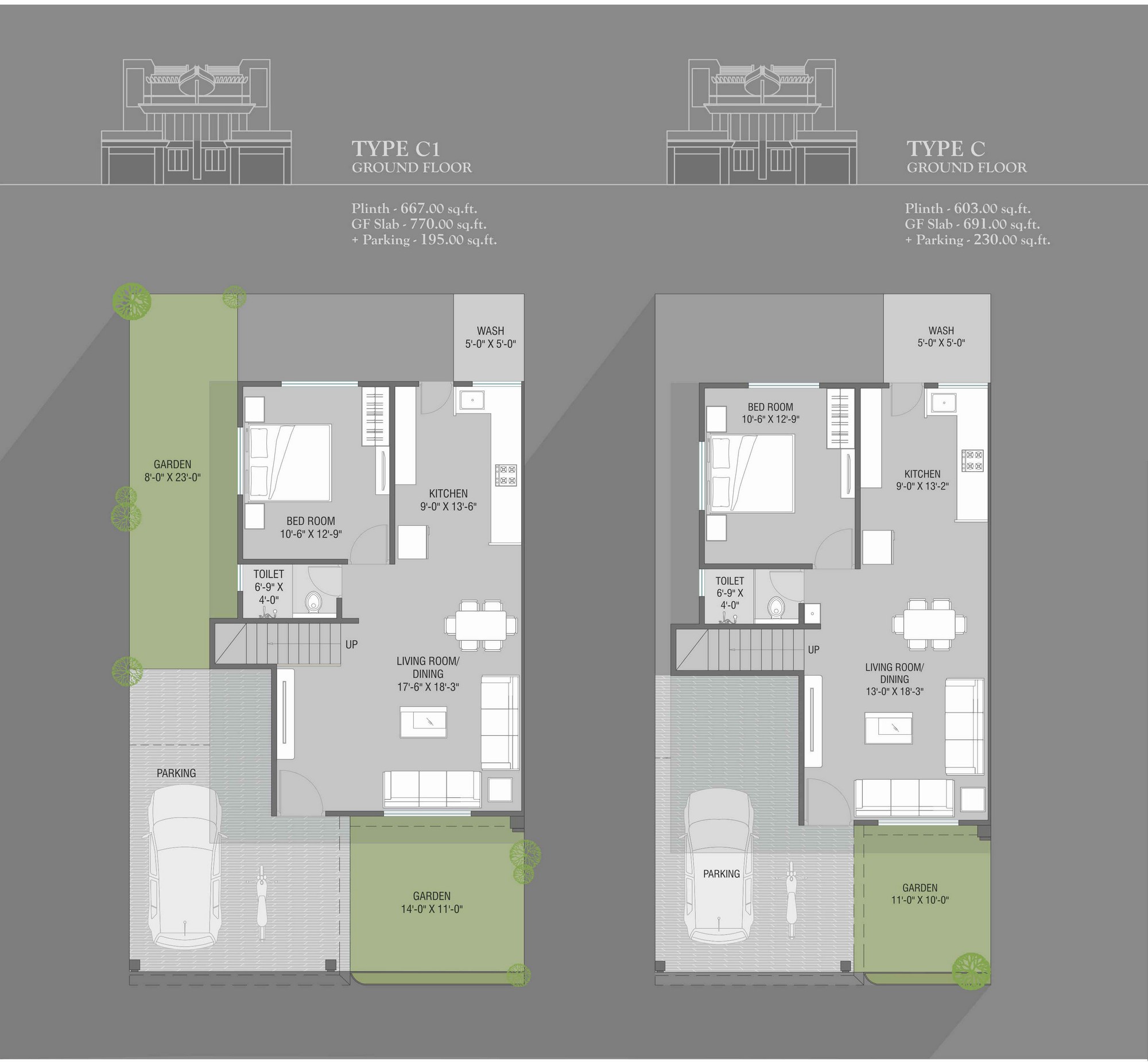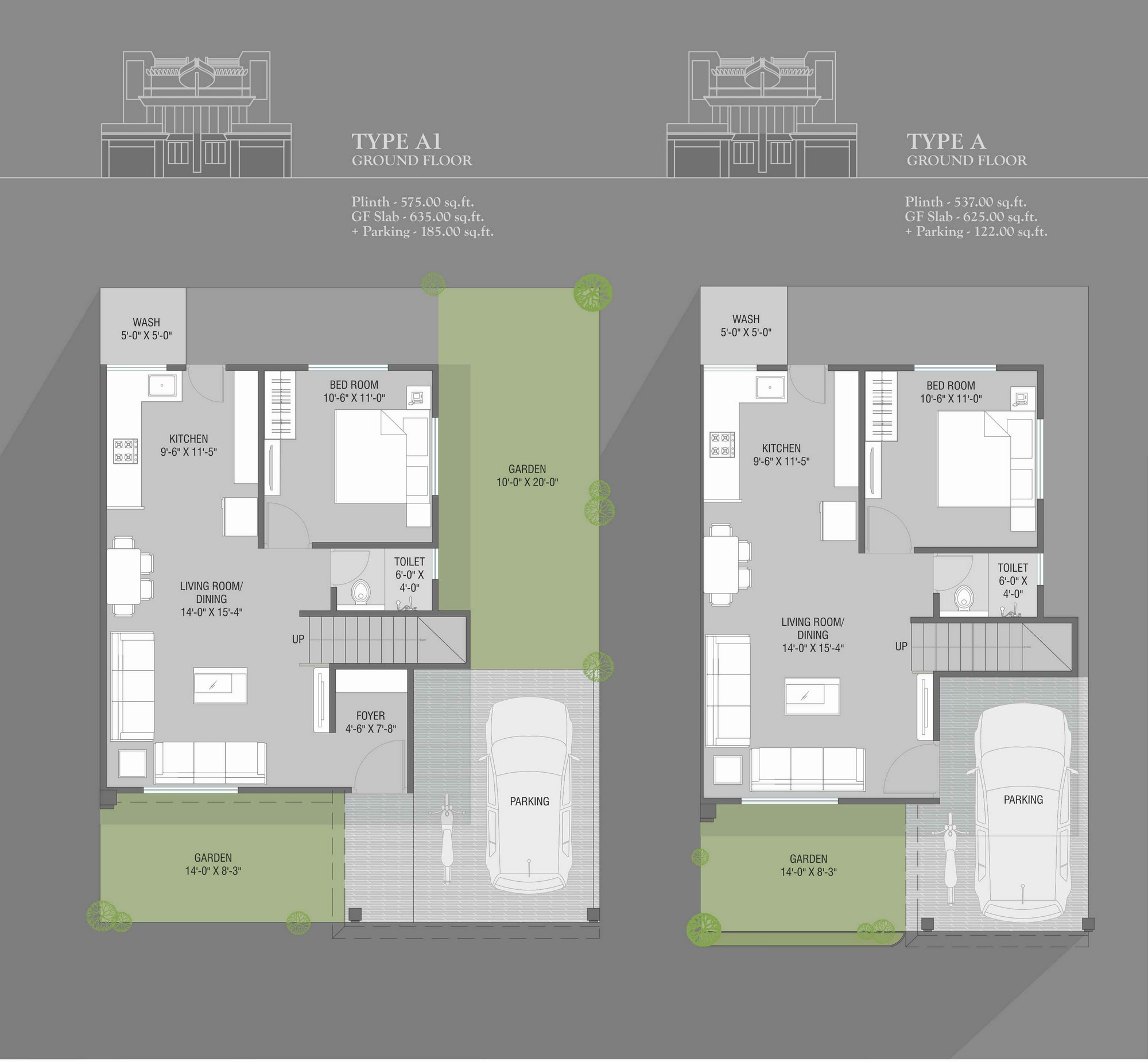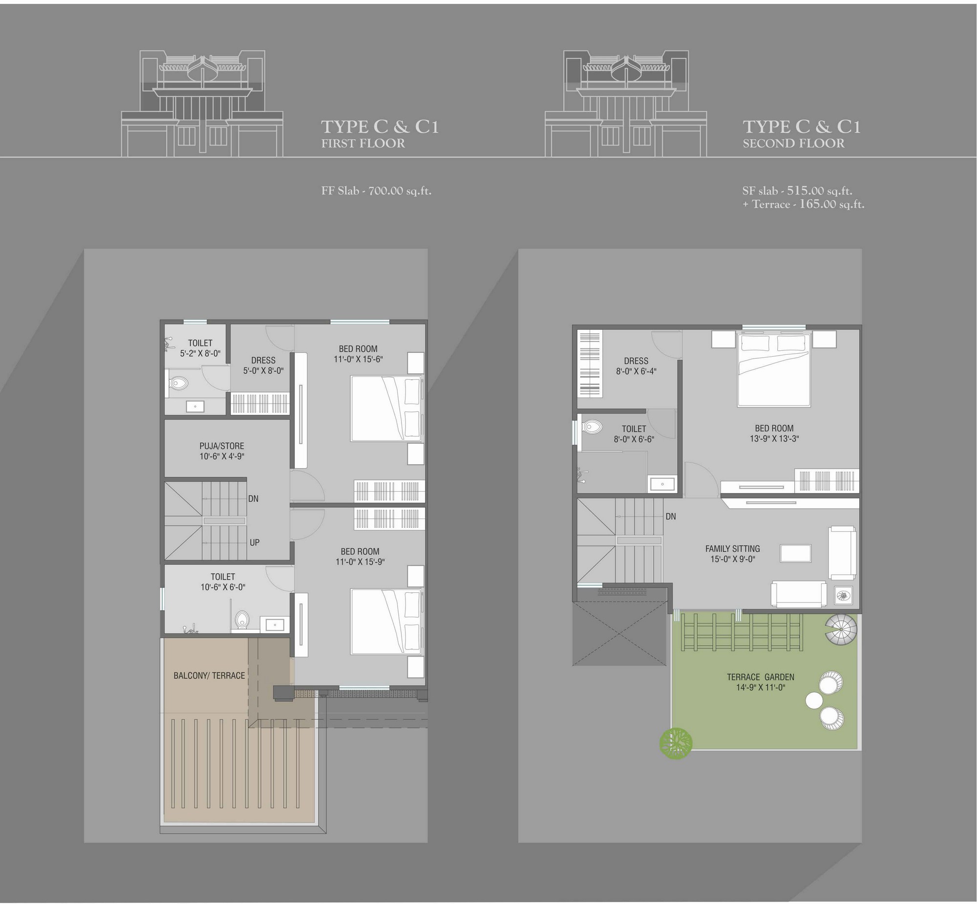 - 4 BHK Villa Built-up Area :-1405.01 – 1784.98 sq.ft