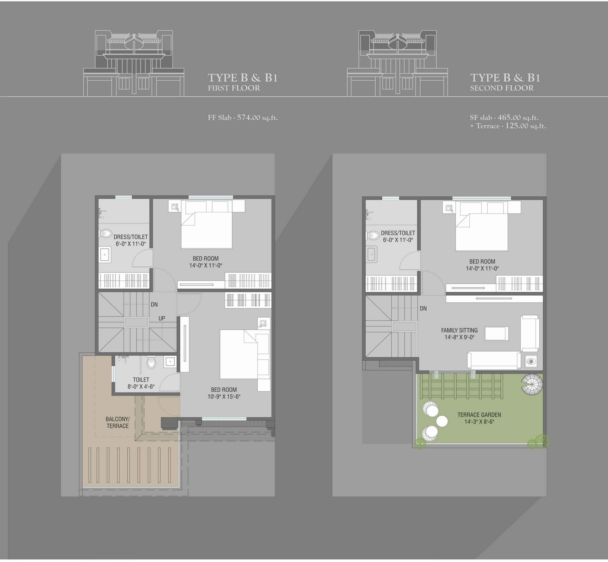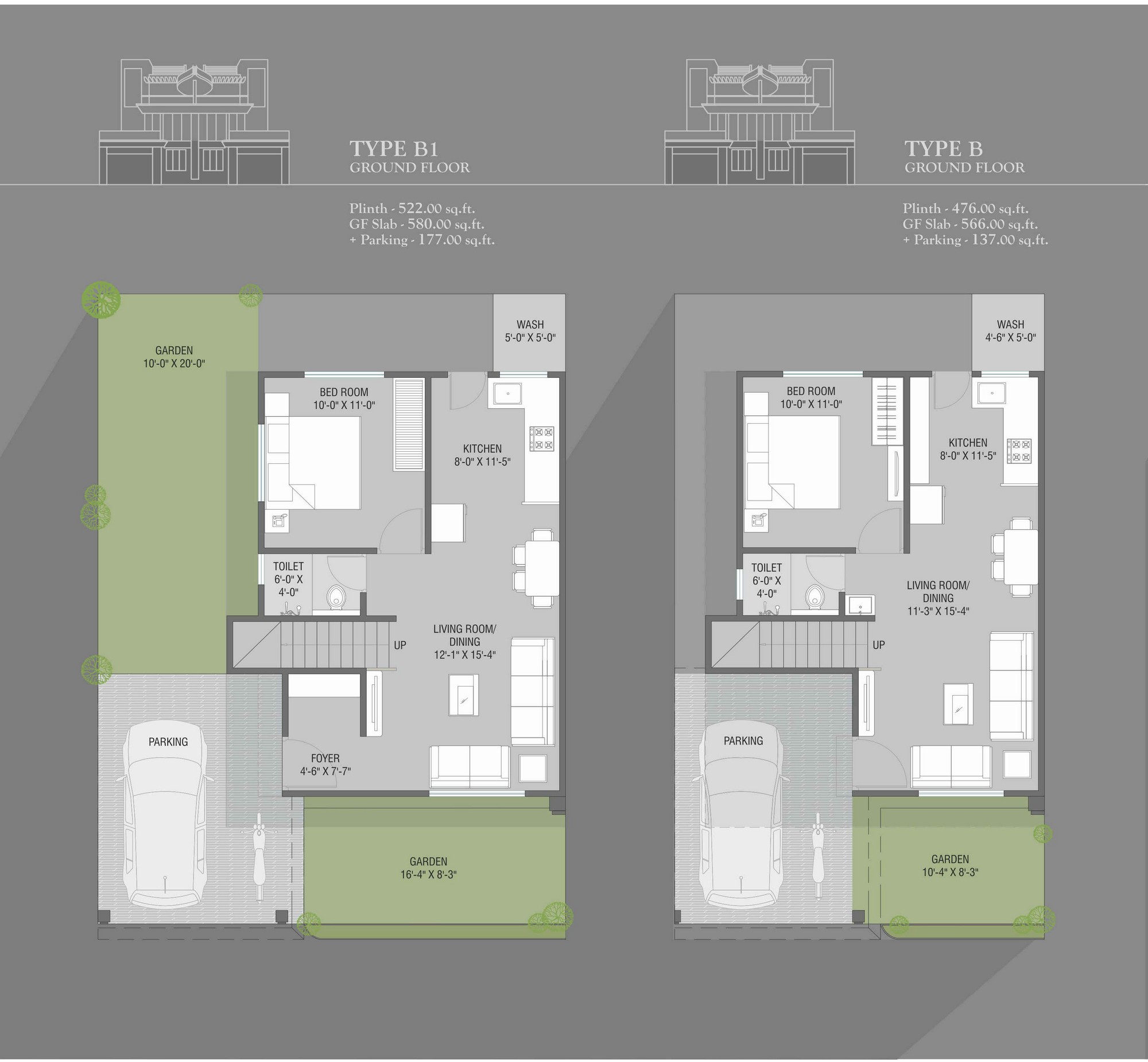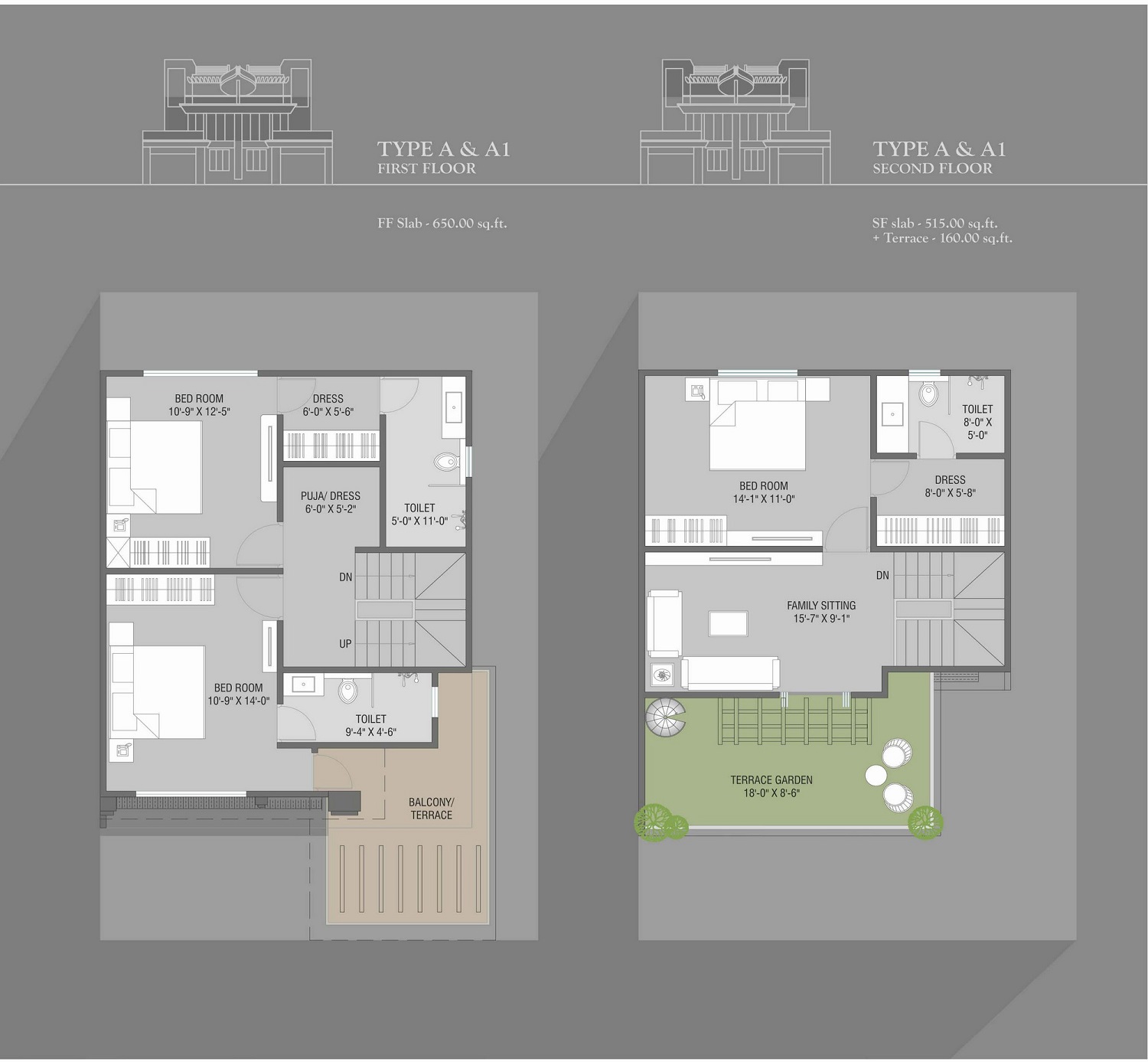 - 4 BHK Villa Built-up Area :-1405.01 – 1784.98 sq.ft