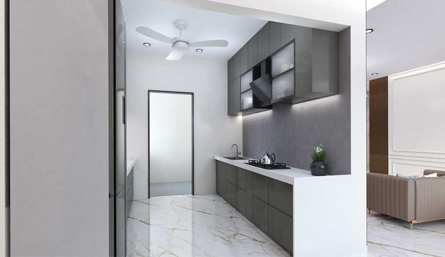 - Parallel/L Shaped Granite kitchen Platforms with stainless steel sink, broadband provision
