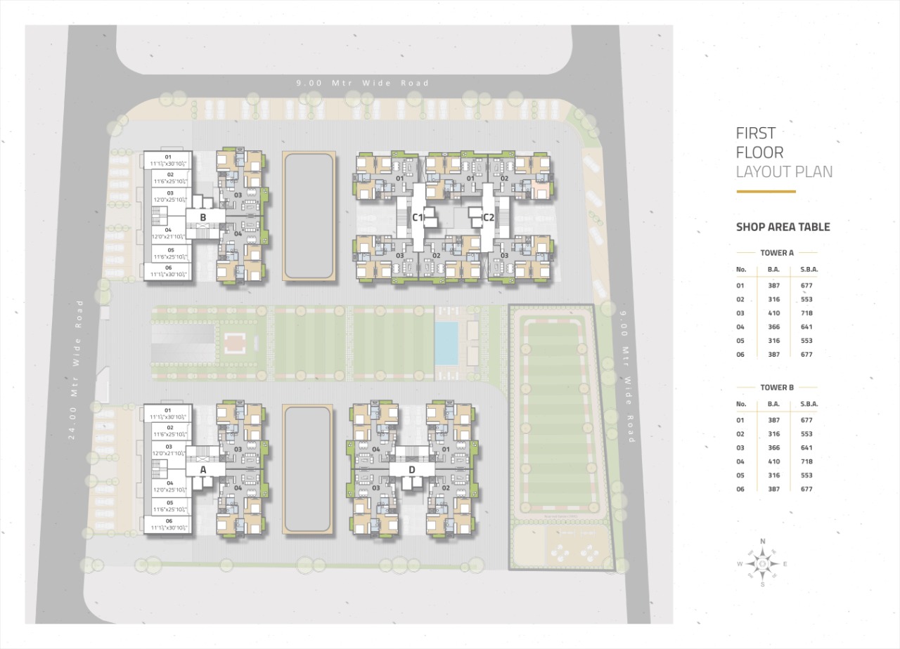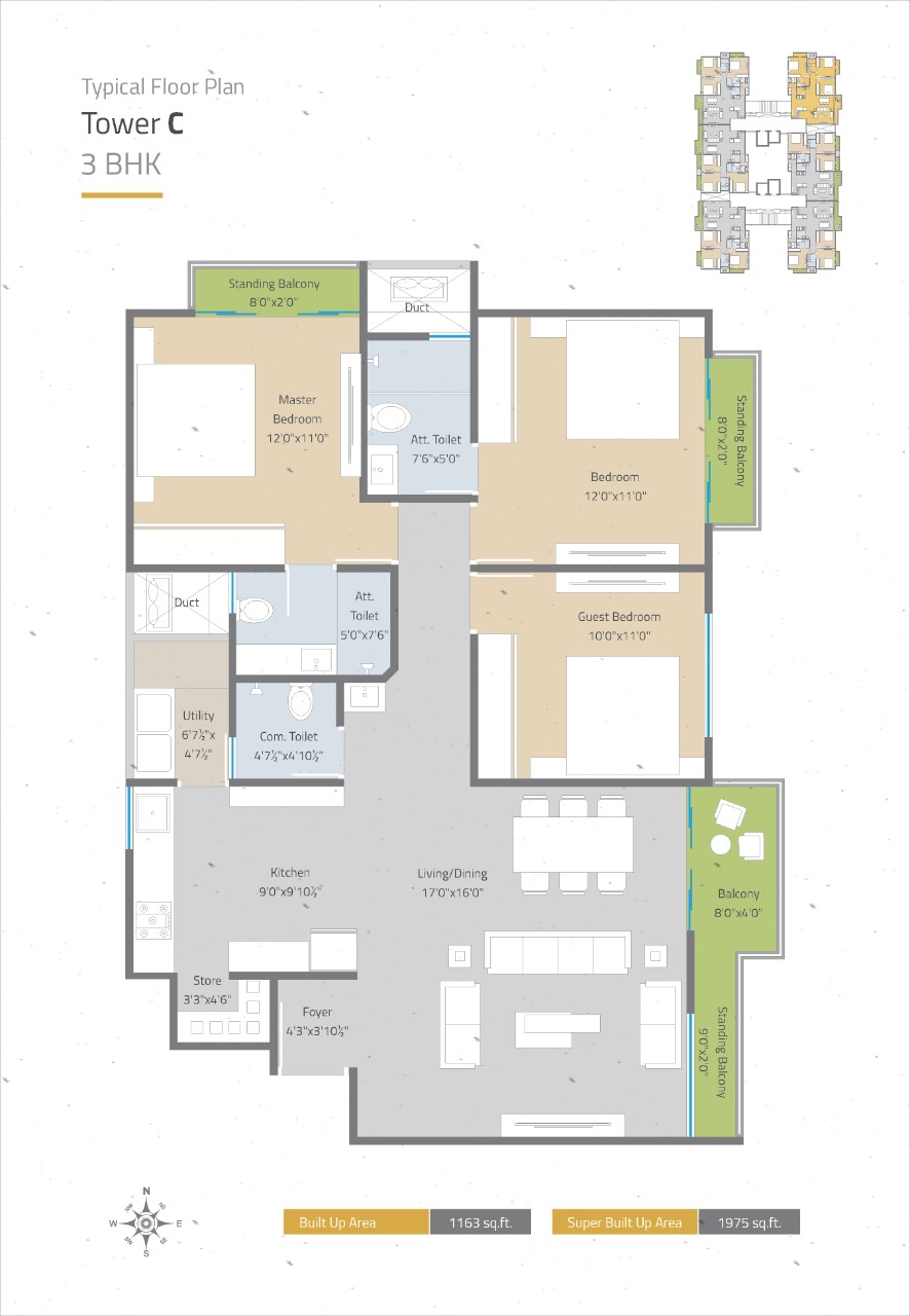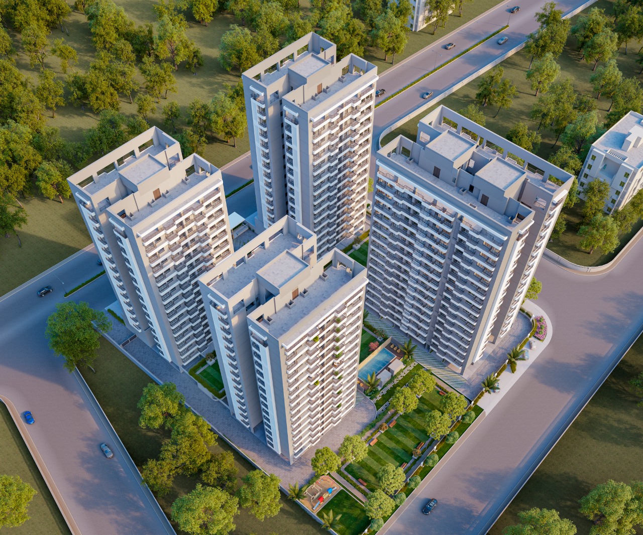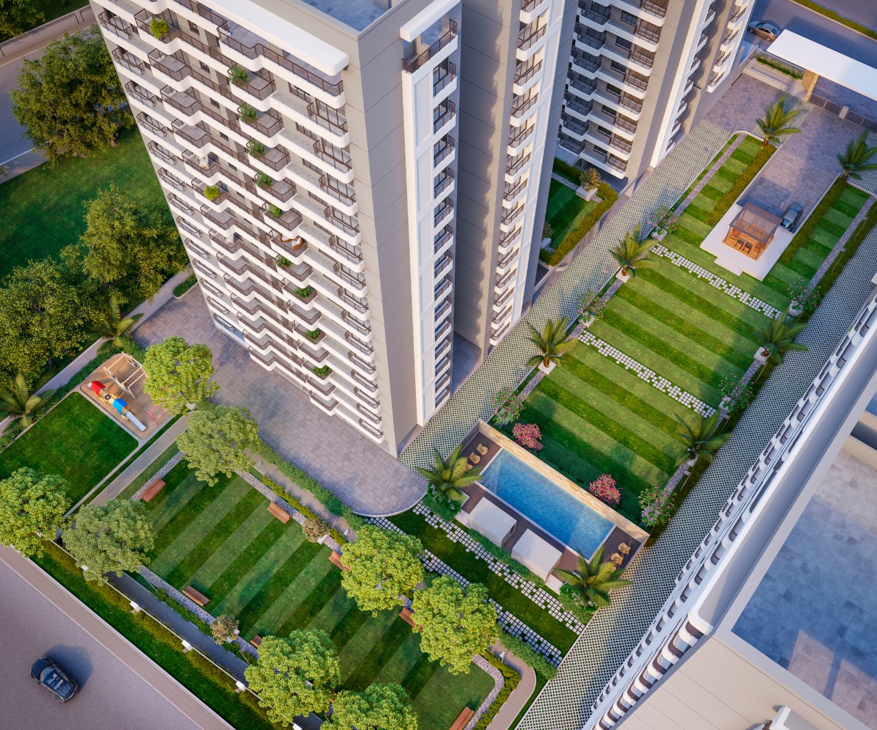 - 3 BHK Apartment Carpet Area :- 1003.3 – 1095.87 sq.ft.