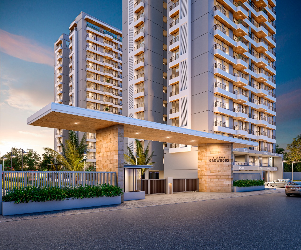 LILLERIA GROUP LAUNCHED Lilleria Oakwoods 3 BHK Apartment in Vadsar, Vadodara Situated in Vadsar, the Lilleria Oakwoods is planned to offer a modern lifestyle to all the residents. The units in Lilleria Oakwoods come at an affordable price that varies from Rs. 59. 9 Lac – 1. 30 Cr. The property is a part of an integrated township which spreads over an area of 84213 Sq-ft. The property comprises of 248 units which are enclosed within a peaceful environment.
