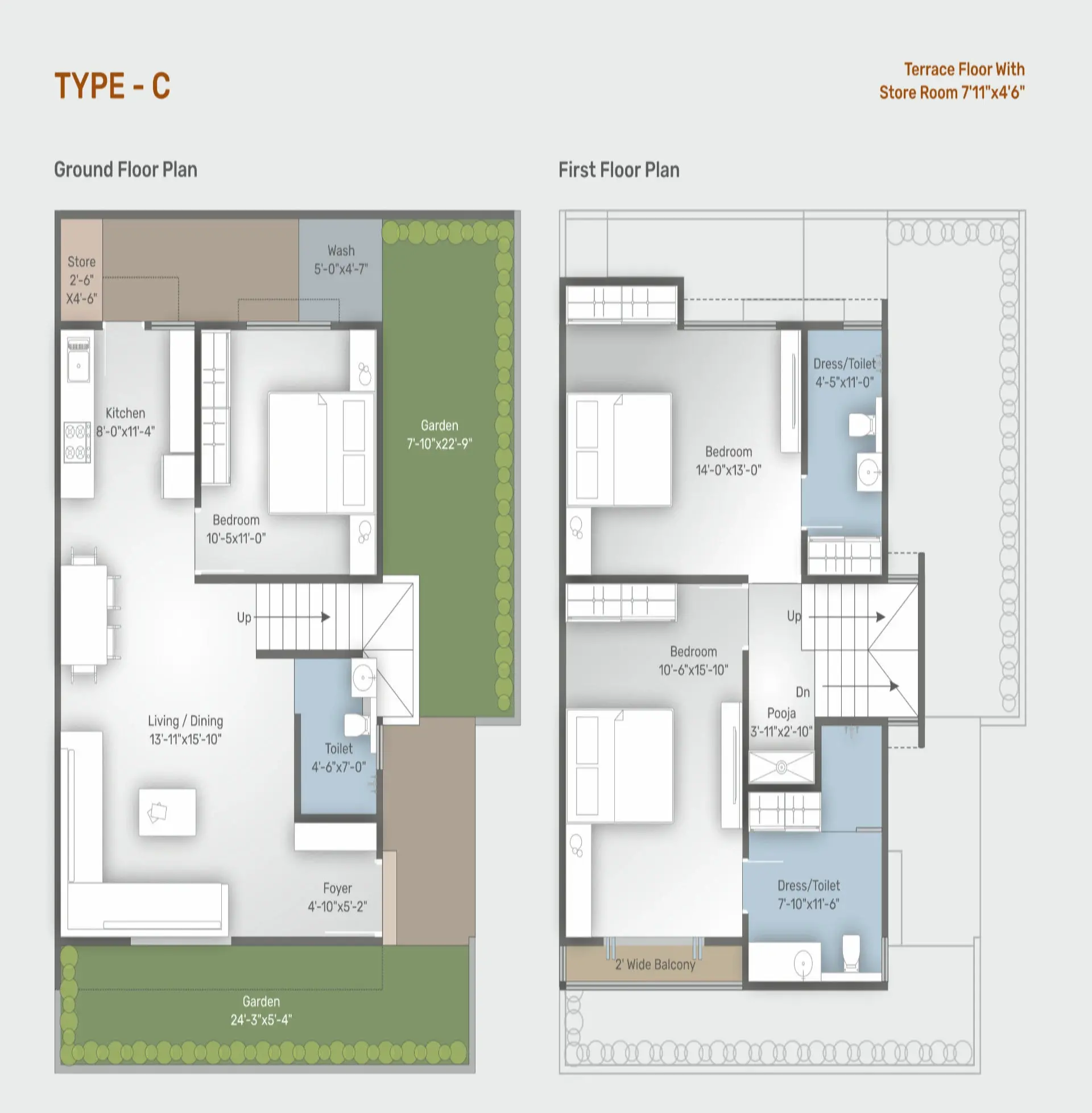 1. Project  Carpet Area (sqft)Type A :- 1064 – 1064