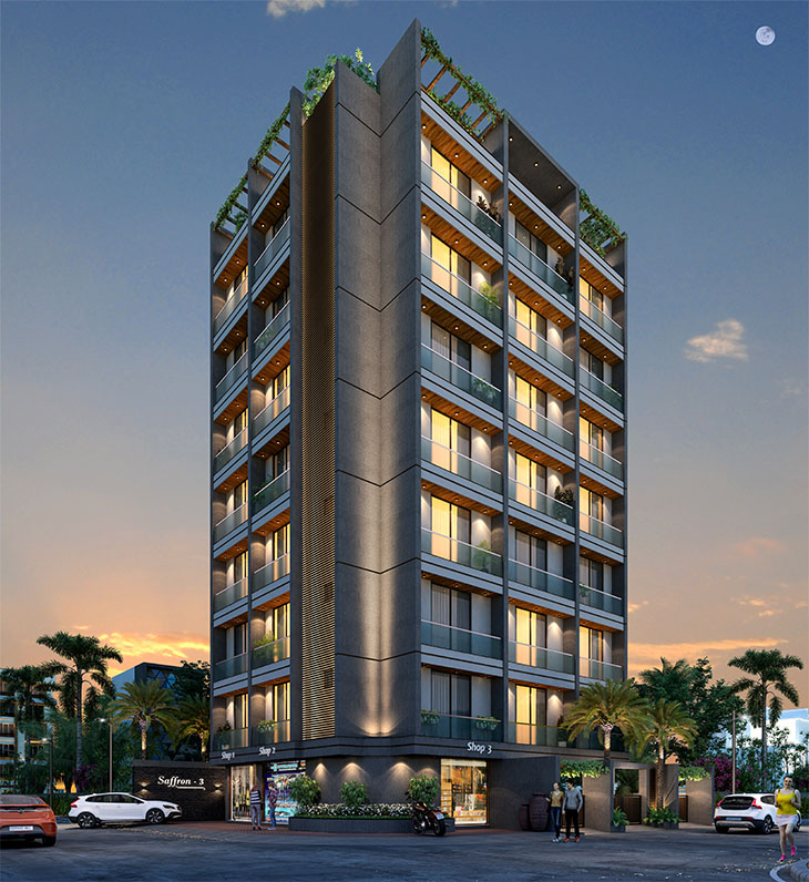 The possession date of Bathani Saffron 3 is Mar, 2024. The address of Bathani Saffron 3 is Plot N 147 Walkeshwari Nagri, Sunshine School Road, Kamdar Colony.