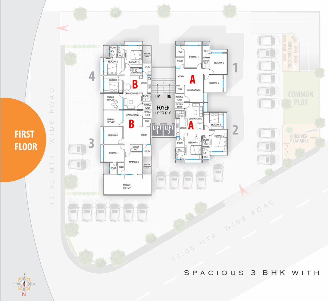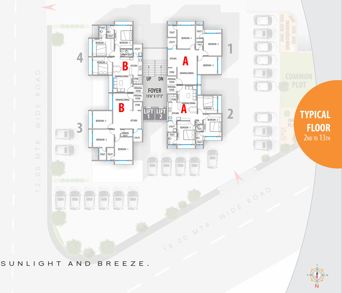 Super Builtup Area : 1626.00 sq.ft - Sizes :- 1615.00 sq.ft. – 1626.00 sq.ft.