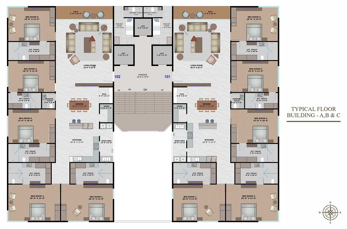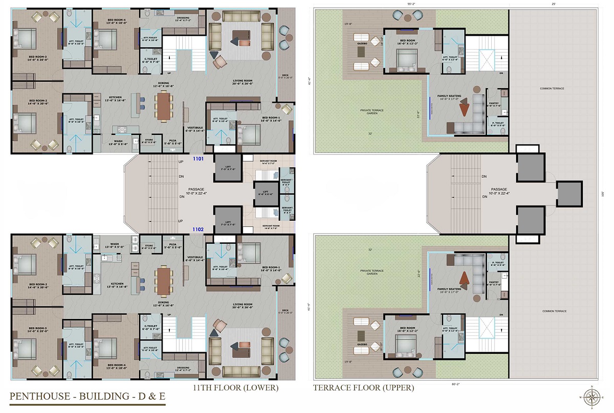 - 5 BHK Apartment Carpet Area :- 3277.4 – 3733.68 sq.ft
