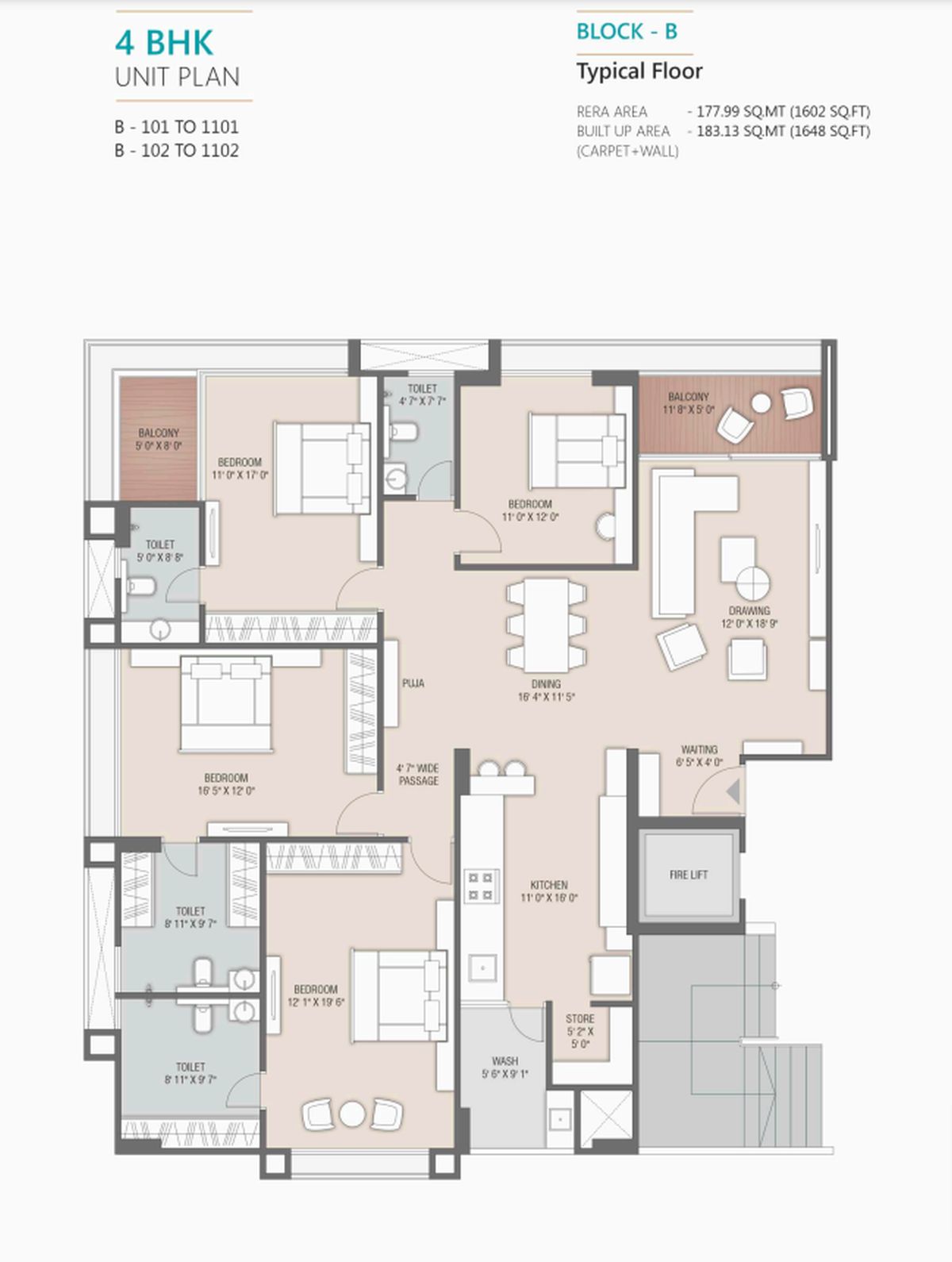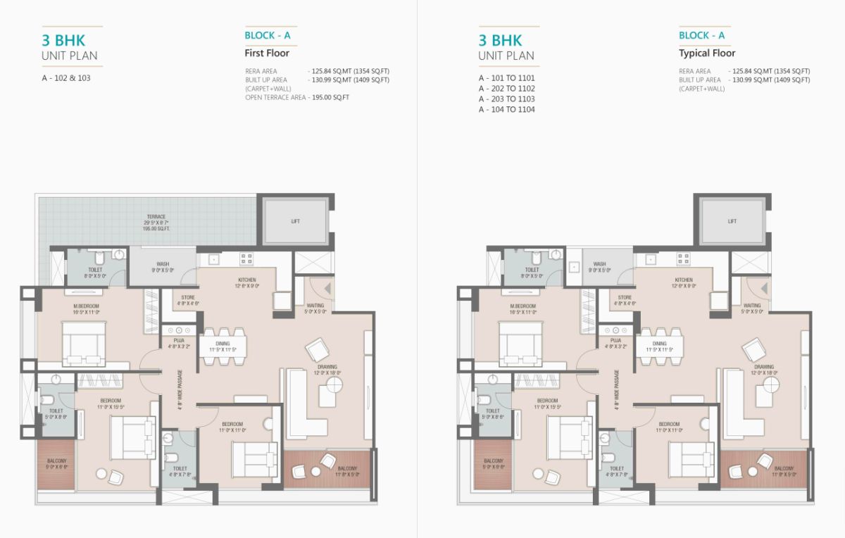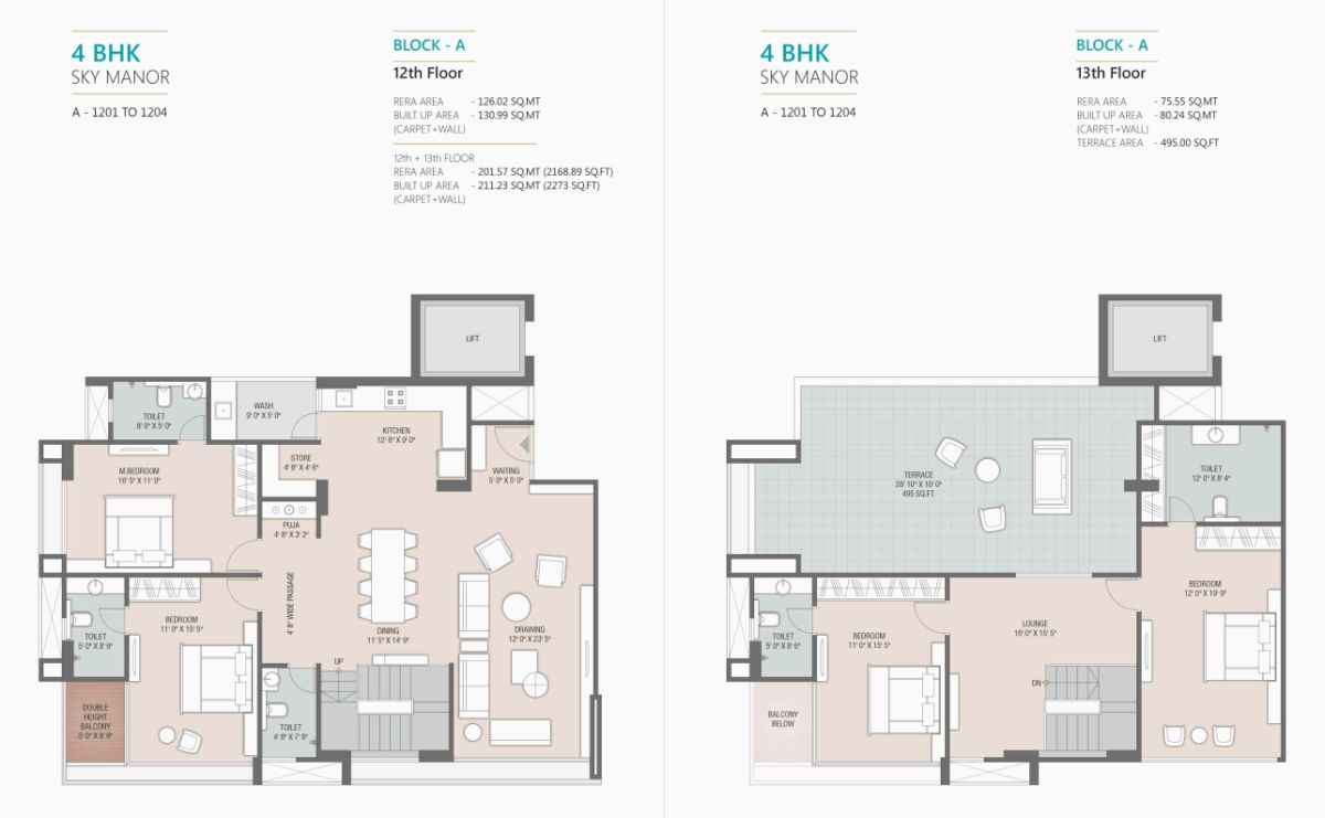 - Average Carpet Area of Units (Sq Mtrs) :- 113.24 – 249.05