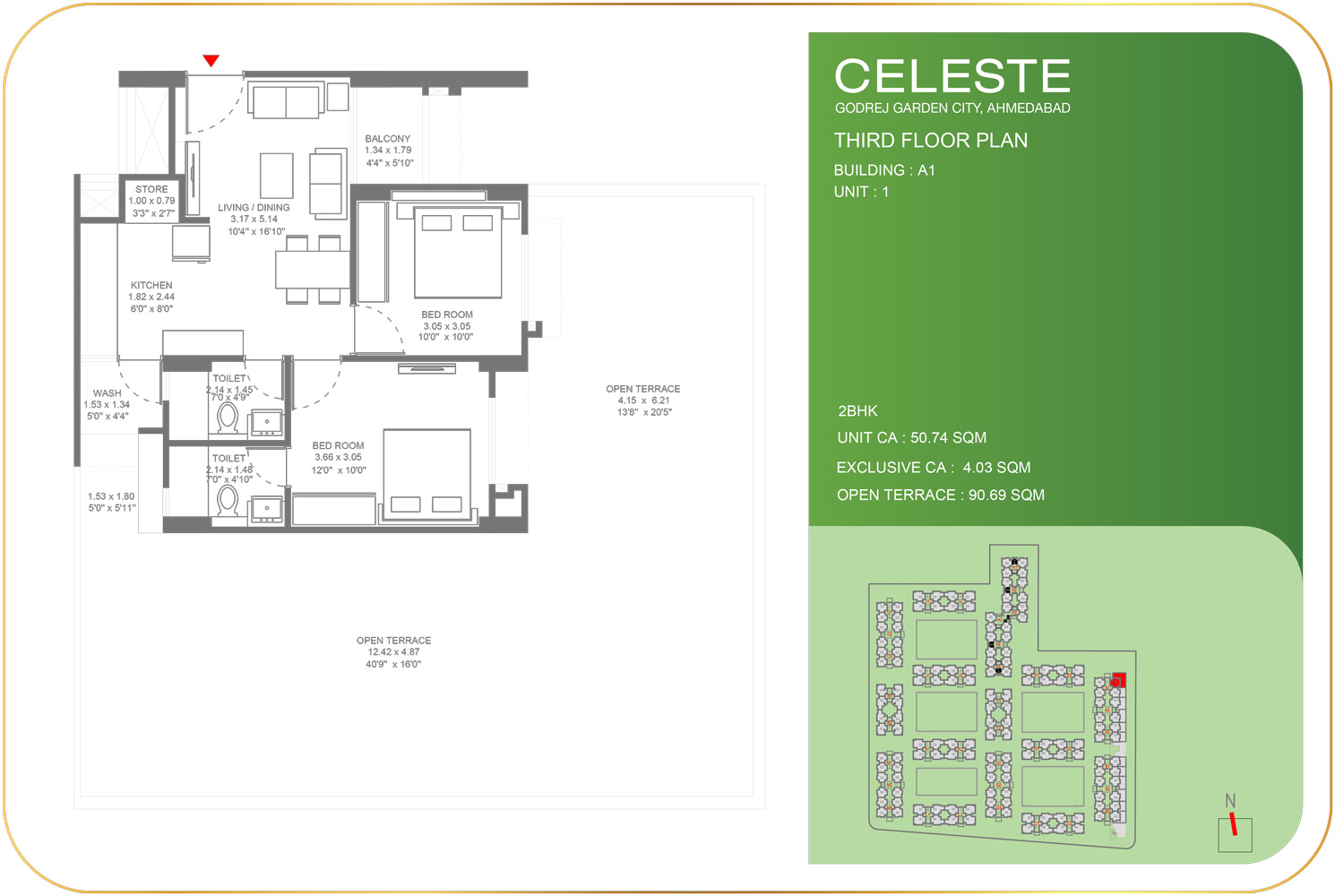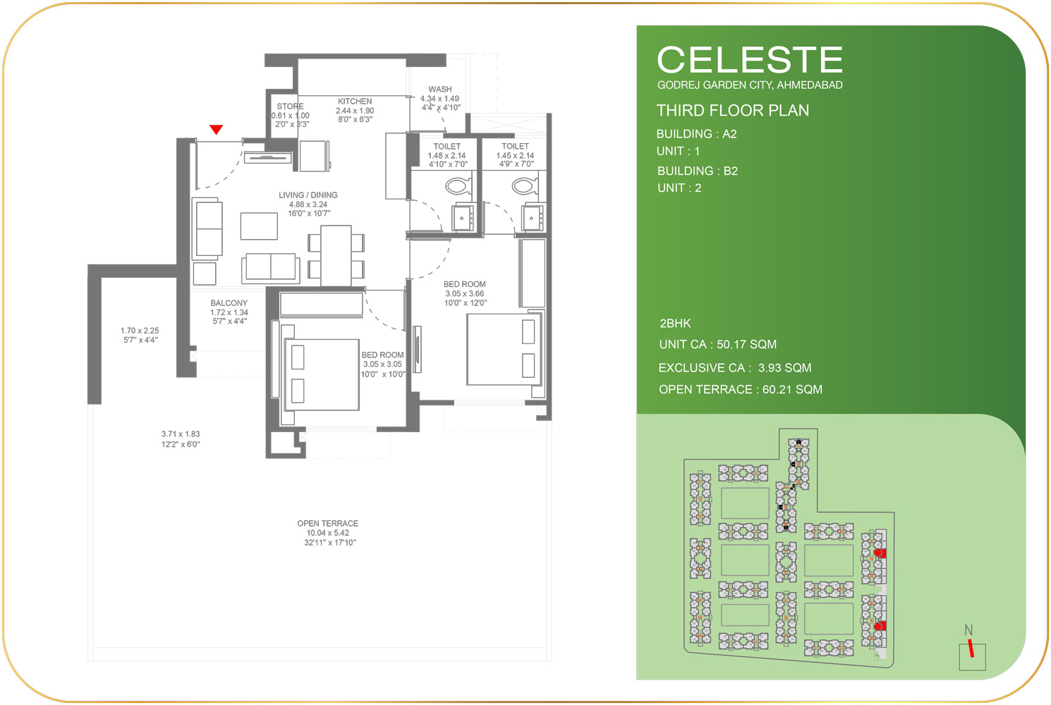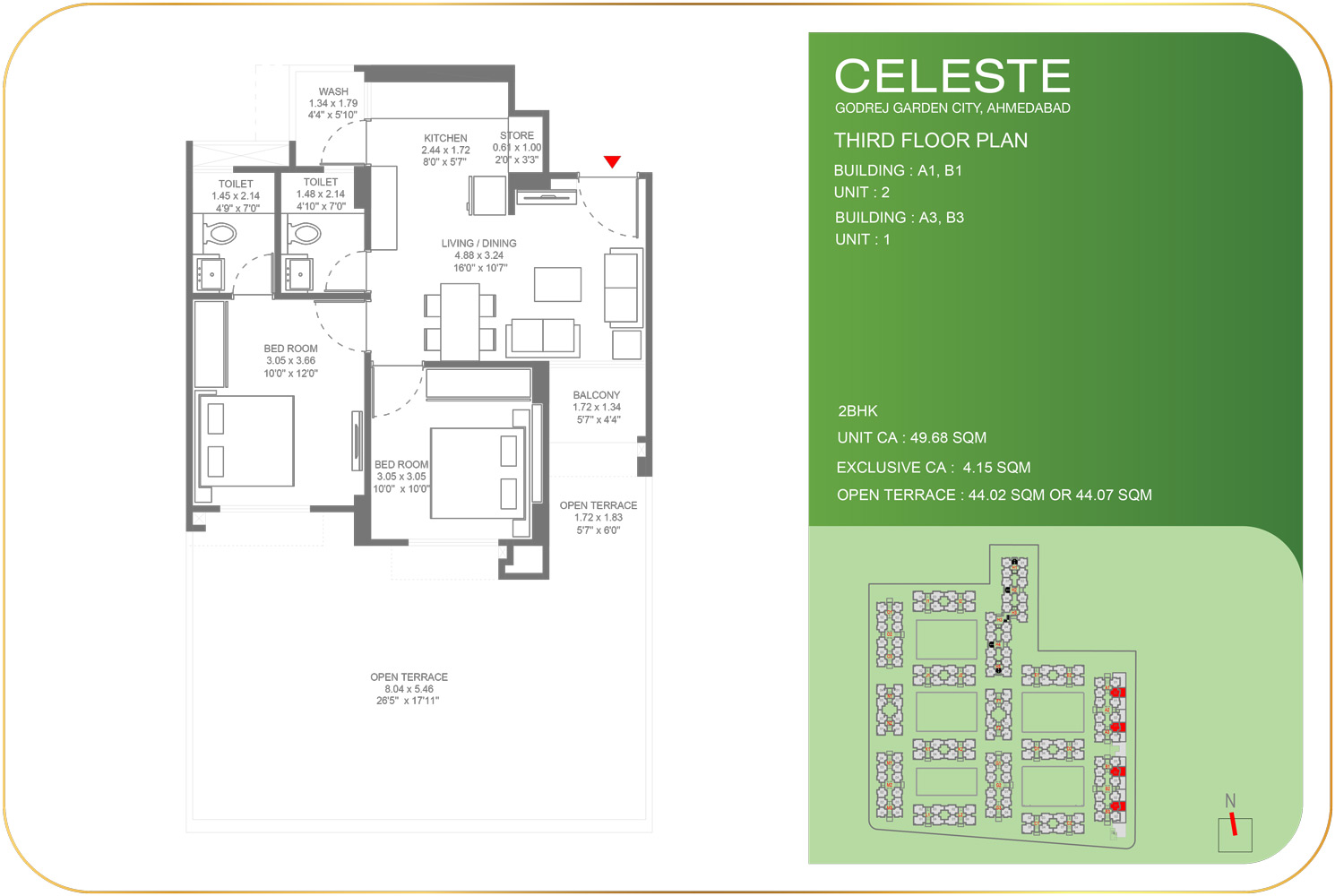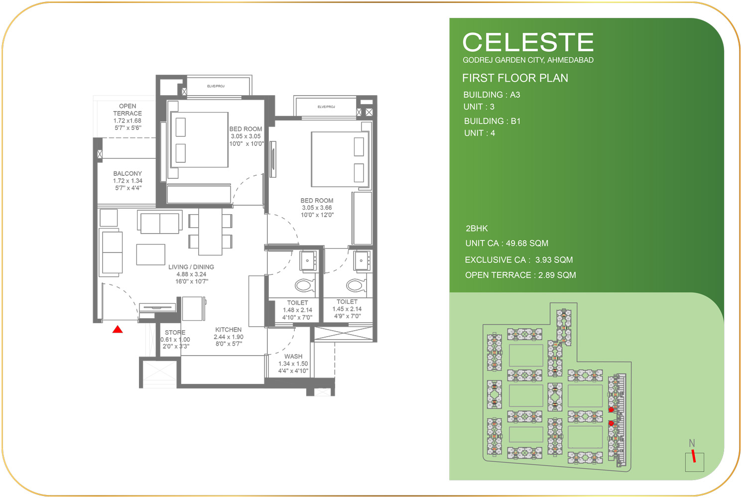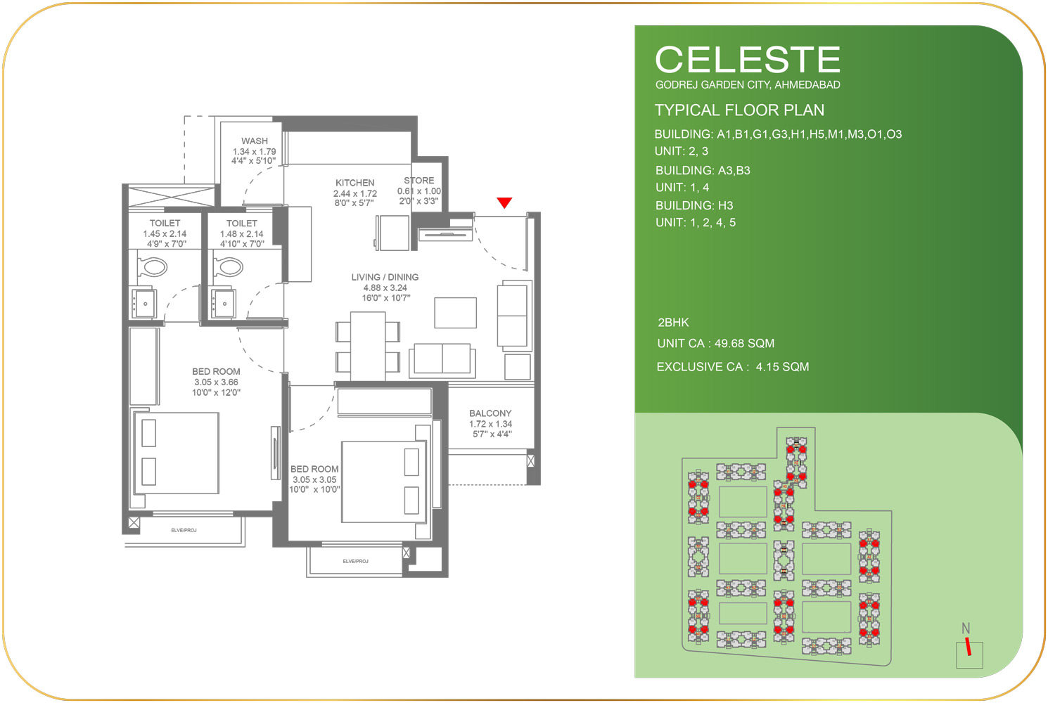 - 2 BHK :- 49.68 – 50.74