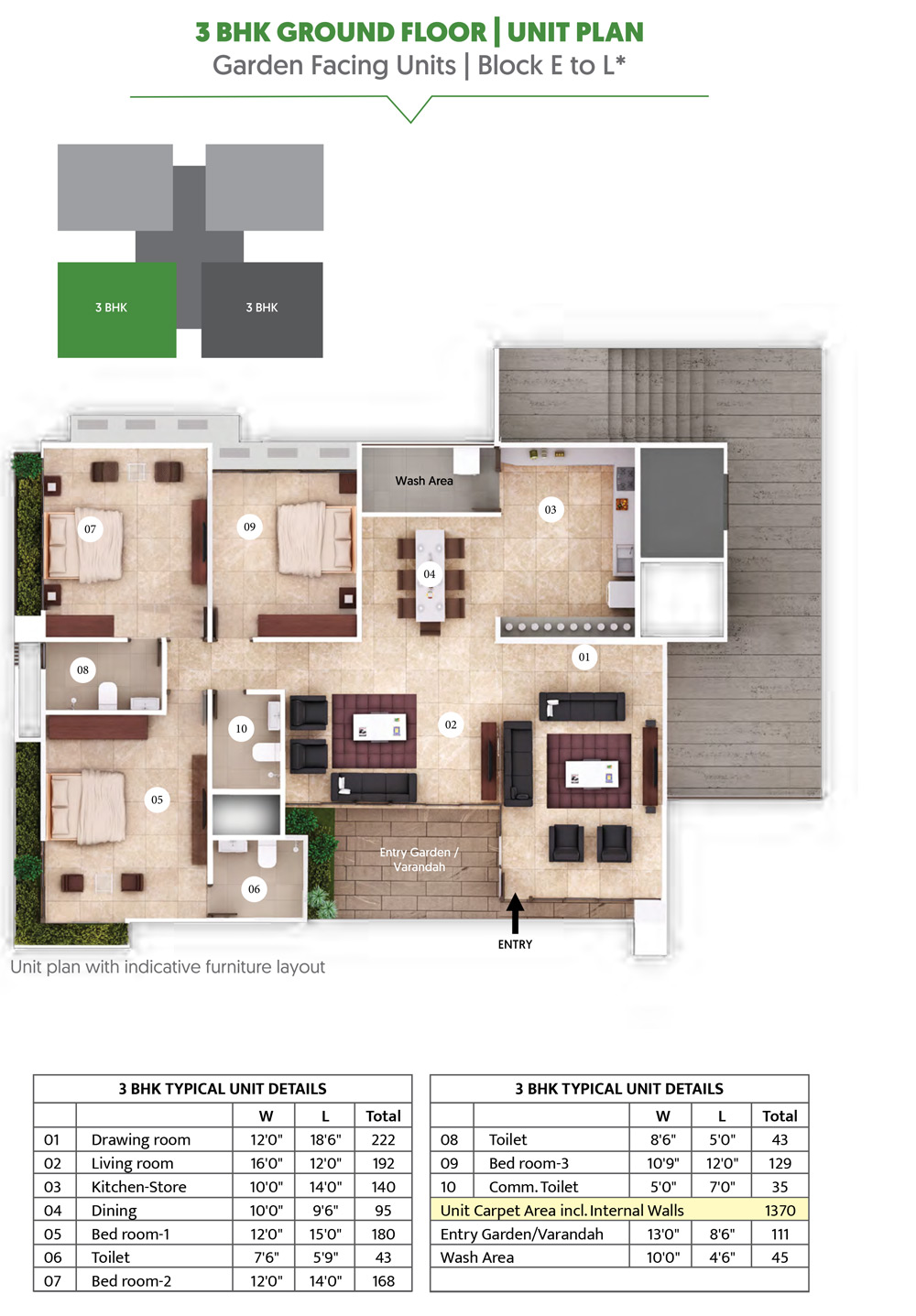 - Average Carpet Area of Units (Sq Mtrs) :- 32.11 – 189.84