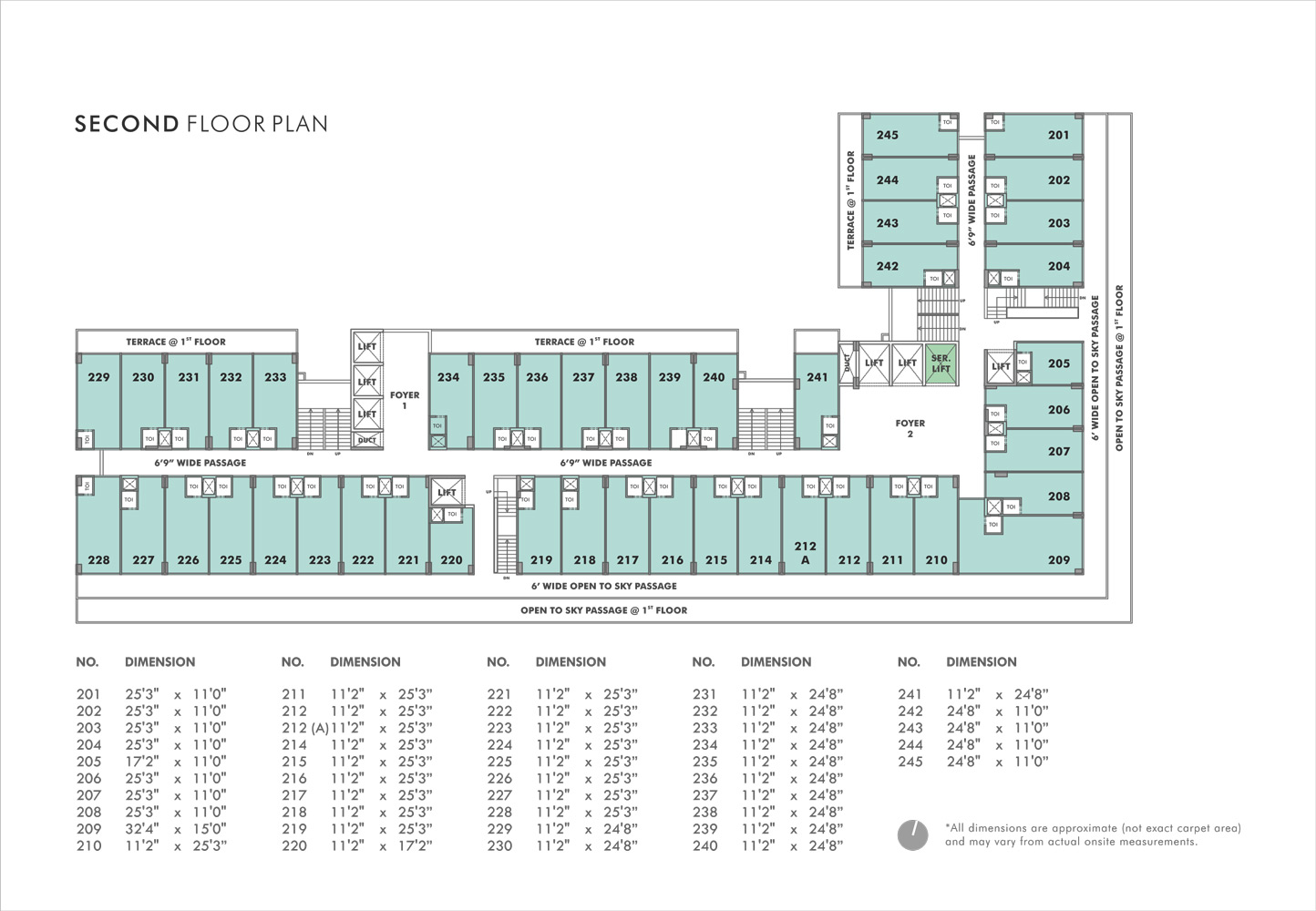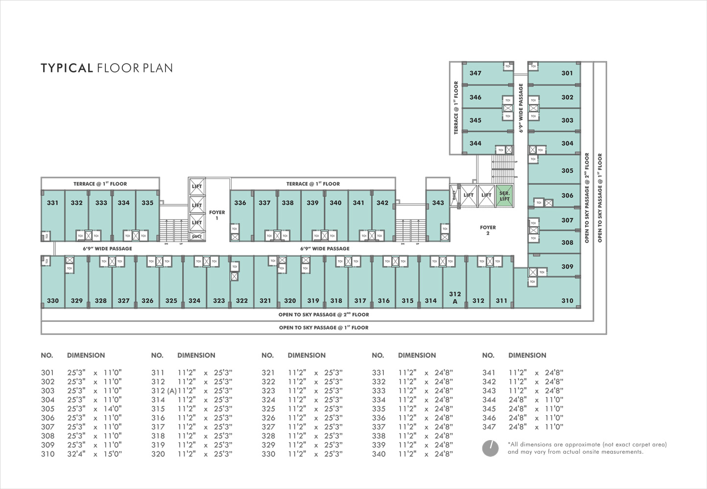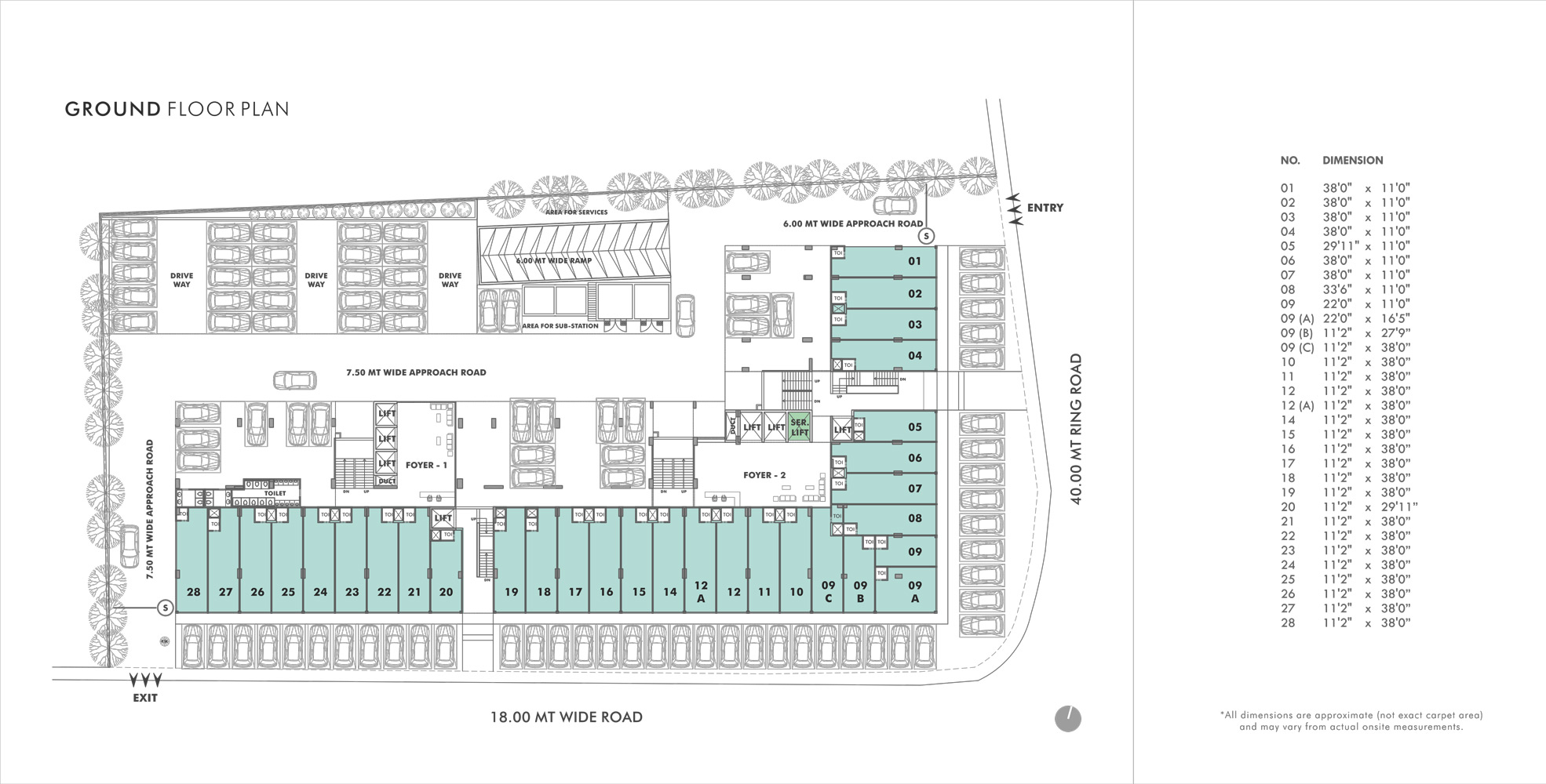 • Average Carpet Area of Units (Sq Mtrs) :- 16.14 – 79.7