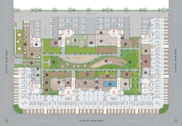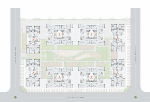 Designed by HM Architects, The Canvas 3 4 and 5 BHK Apartment in WAPA Ahmedabad hosts 3, 4 and 5 BHK apartments containing spacious bedrooms of size 19’2” * 14’0”. The core of the project is the Central Vista, the landscaped arena designed by Aniket Bhagwat that holds together 30+ amazing amenities.