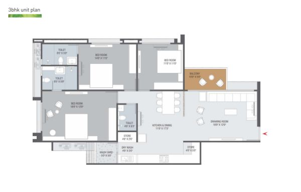 - 3 BHK Apartment : 2200.00 SQ.FT