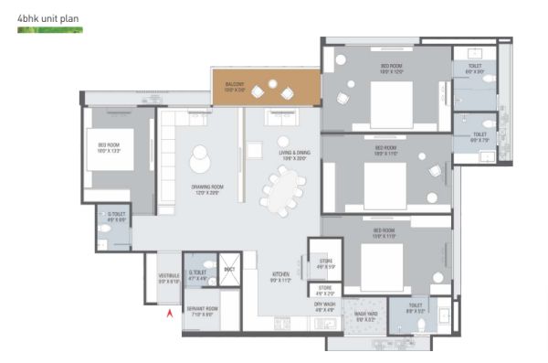 - 4 BHK Apartment : 3300.00 SQ.FT
